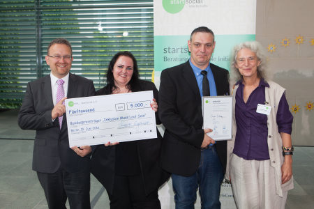 Rund 300 ehrenamtliche Juroren wählten im Anschluss die 25 überzeugendsten Initiativen aus, die von startsocial-Schirmherrin Bundeskanzlerin Angela Merkel zur Preisverleihung ins Bundeskanzleramt eingeladen wurden. Sieben Projekte wurden dort mit Geldpreisen von jeweils 5.000 EUR für ihr außerordentliches Engagement ausgezeichnet.