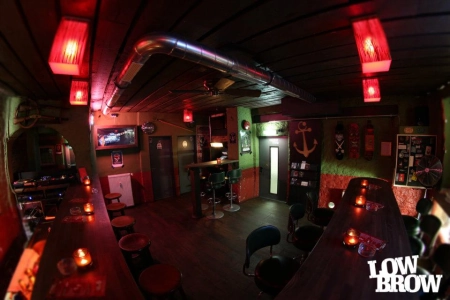 Die Rock Bar LowBrow Darmstadt ist über zwei Stufen zugänglich, es bedarf hier also helfender Hände.