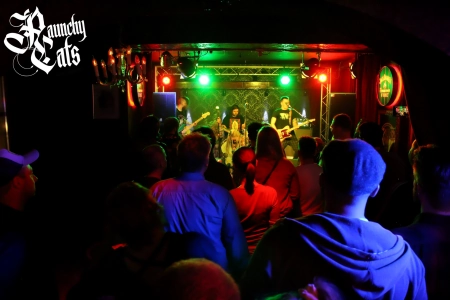 Ein Podest vor der Bühne gibt es nicht, im Paunchy Cats finden ca. 150-250 Besucher Platz.