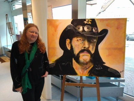 Durch ihre Adern fließt purer Rock`n`Roll, die hessische Künstlerin Birgit Fuchs spendet Bild des Motörhead Fonters Lemmy für Inklusion Muss Laut Sein.